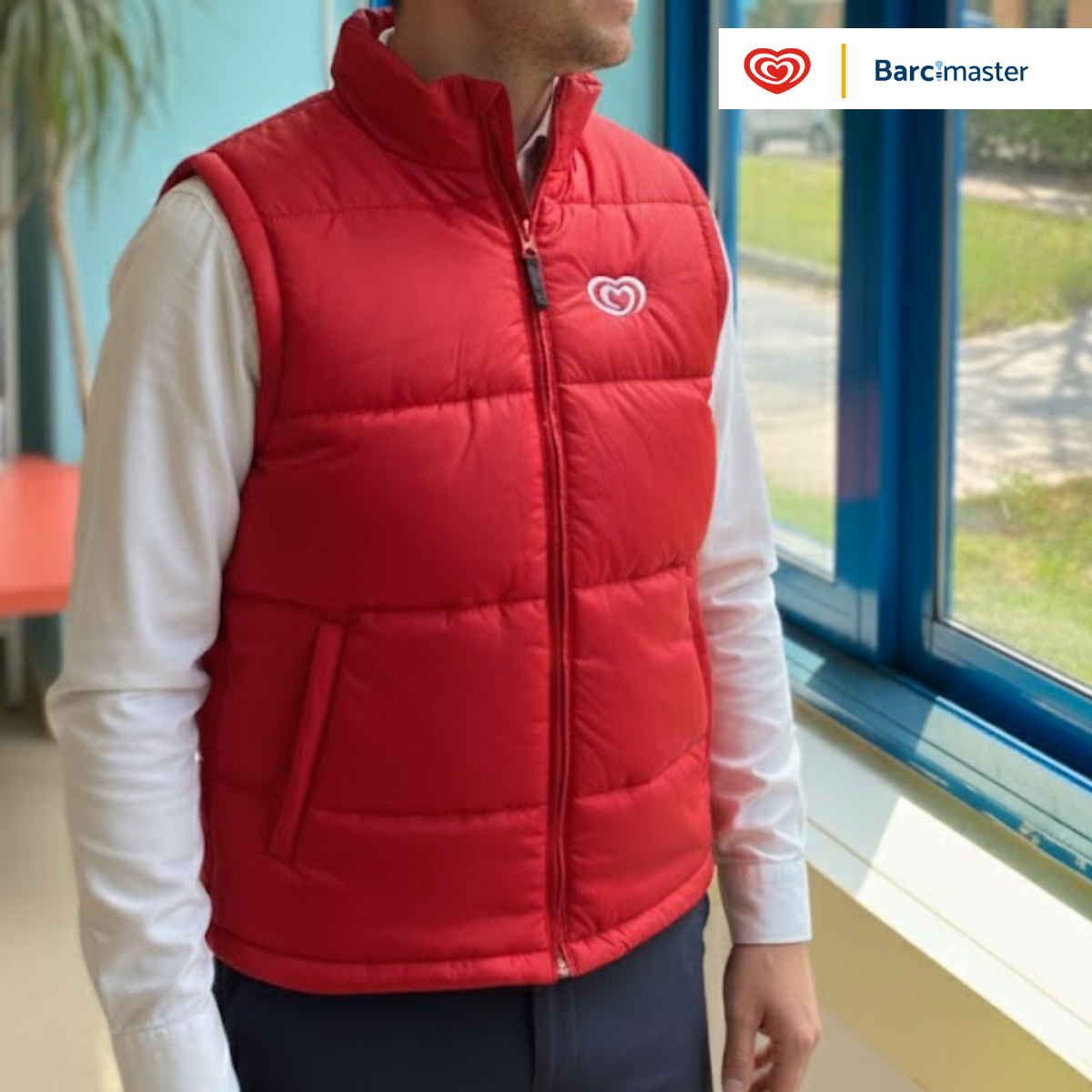 Chalecos con el logo en bordado. Una pieza cómoda y práctica para el uso diario que refuerza la visibilidad de merca en los puntos de venta.